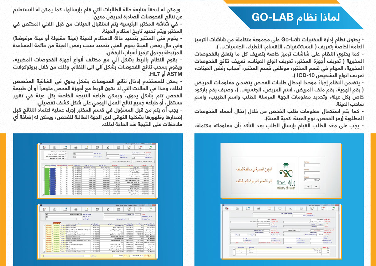 ادارة المختبرات وبنوك الدم بصحة الطائف تفعيل نظام Go-lab بادارة المختبرات وبنوك الدم بصحة الطائف المزيد